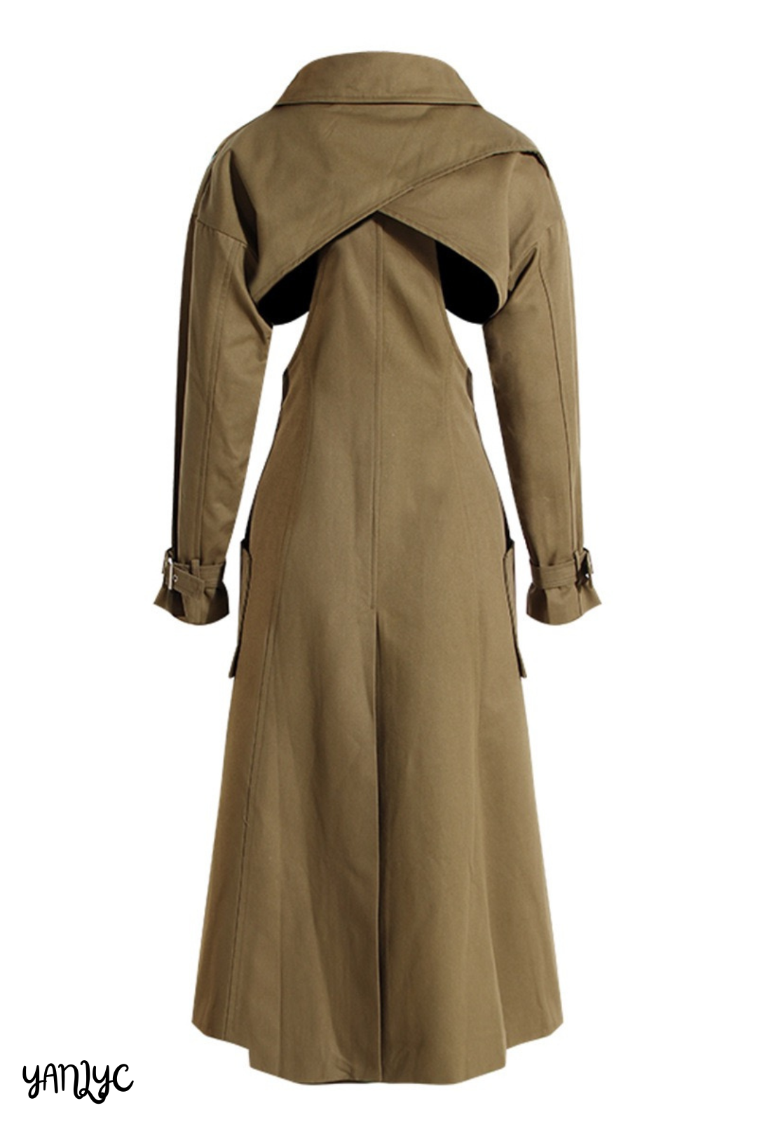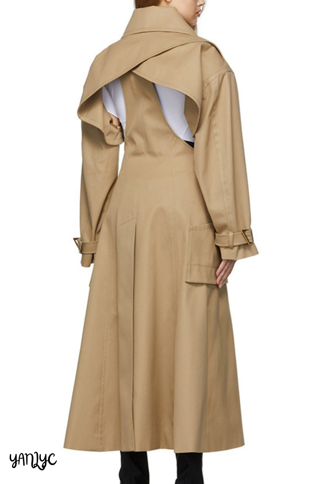 Sa véritable originalité réside dans ses découpes modernes au dos et sur les côtés, qui laissent subtilement apparaître la tenue portée dessous. Ce design innovant transforme une pièce intemporelle en un manteau tendance et avant-gardiste.